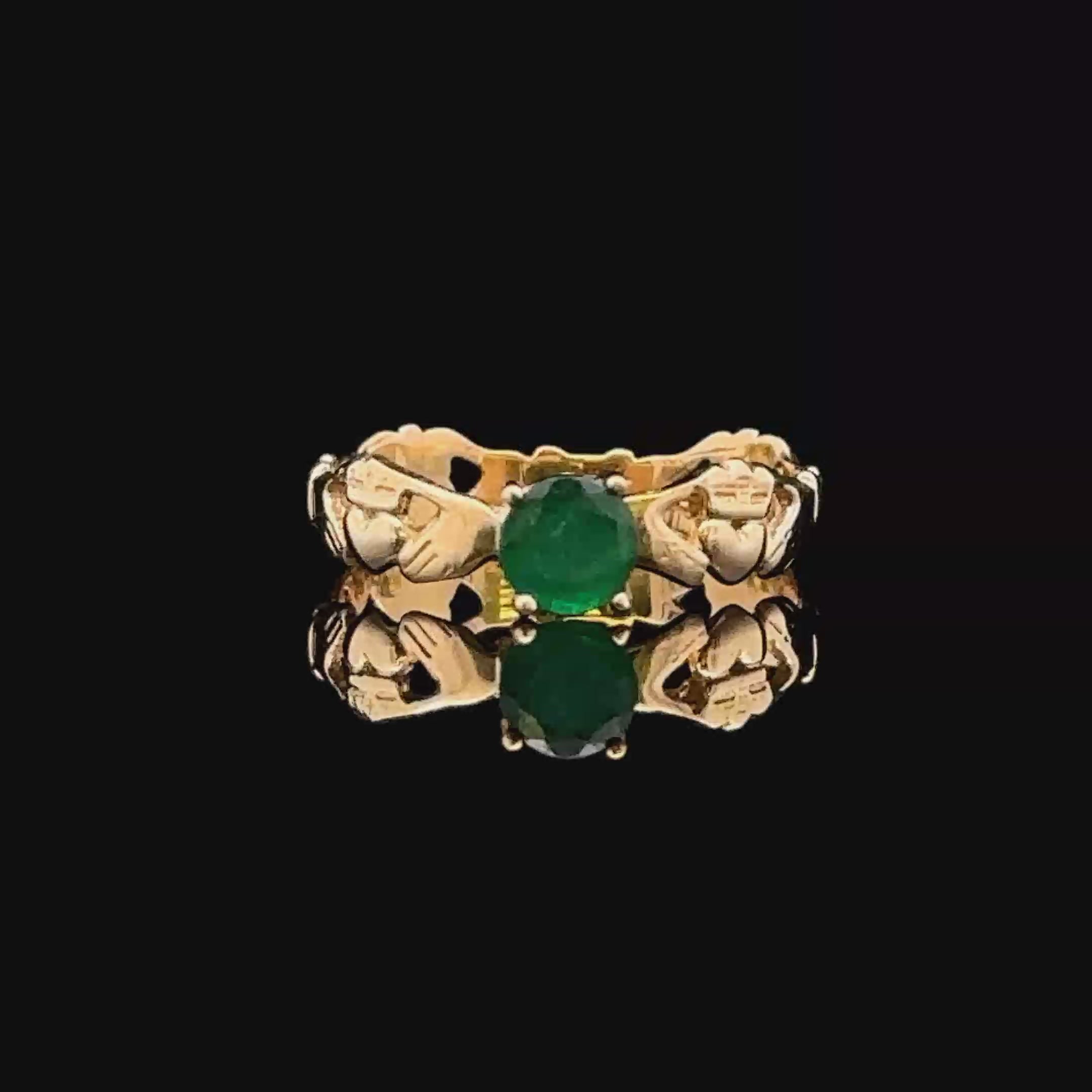 Berkley 14K Yellow Gold Claddagh Band with Emerald Center
