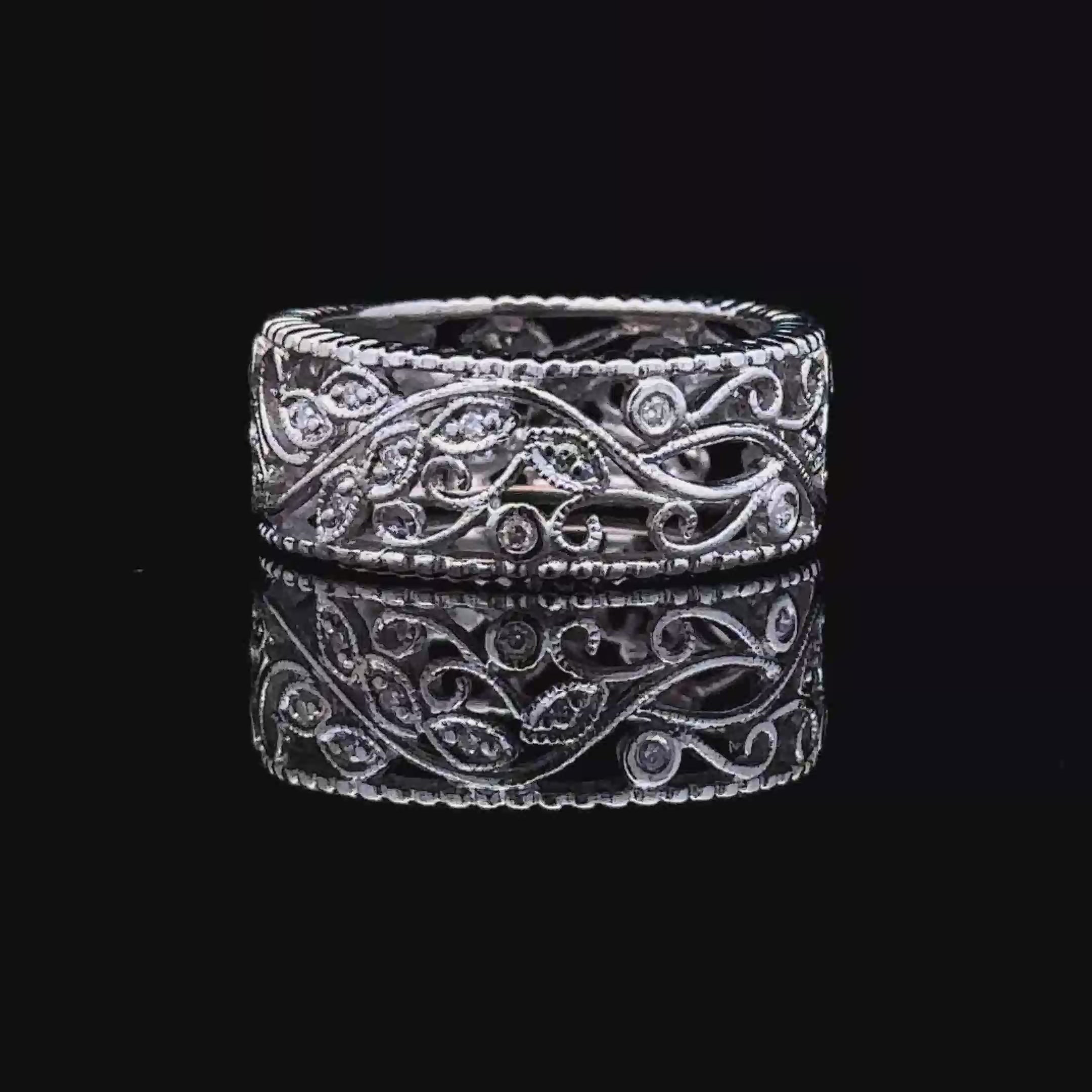 Karen White 14K Filigree Ring with 0.18TW Diamonds – Size 5.5