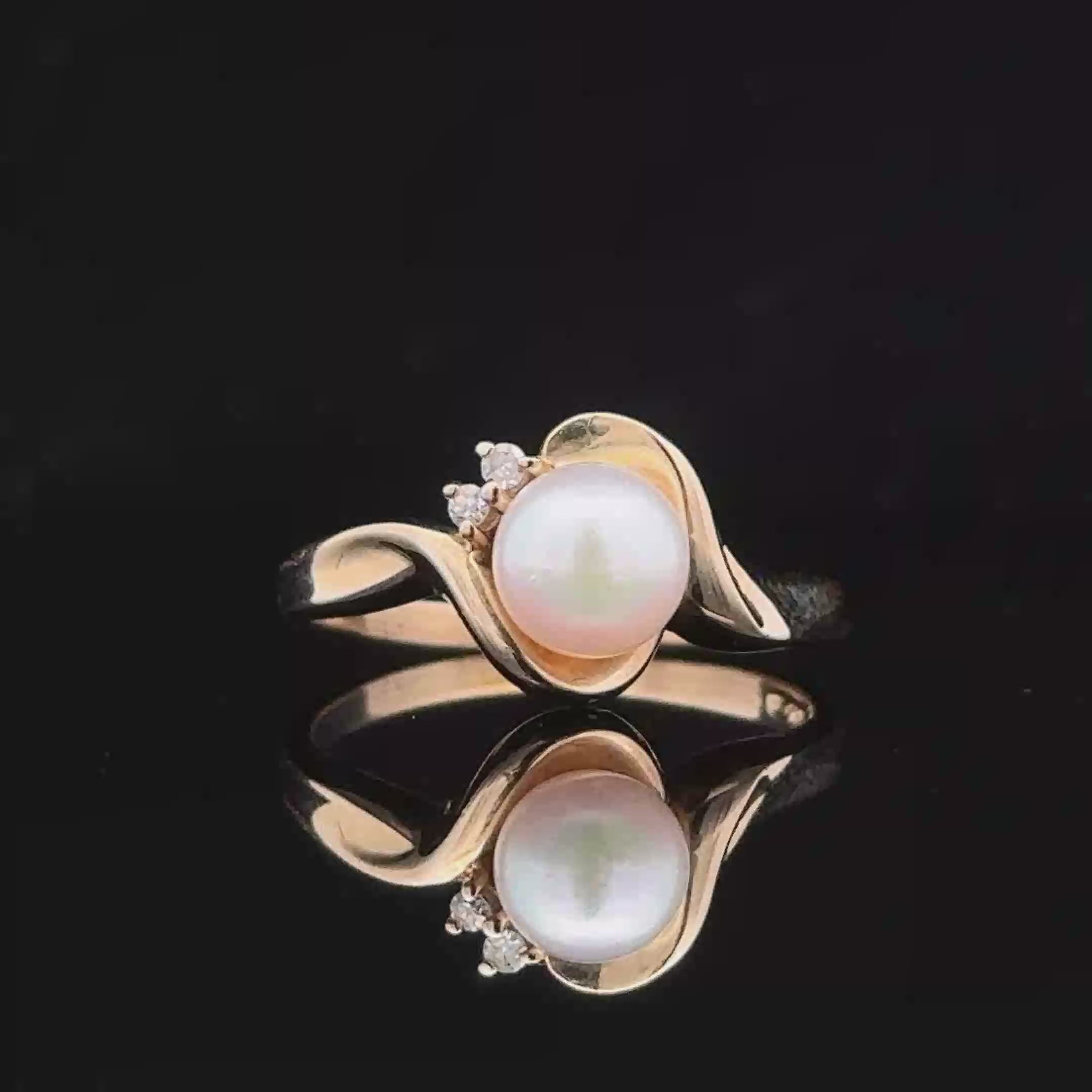 The Addyson ring in 14K yellow gold offers vintage elegance with a modern touch. A luminous pearl is accented by two sparkling diamonds.