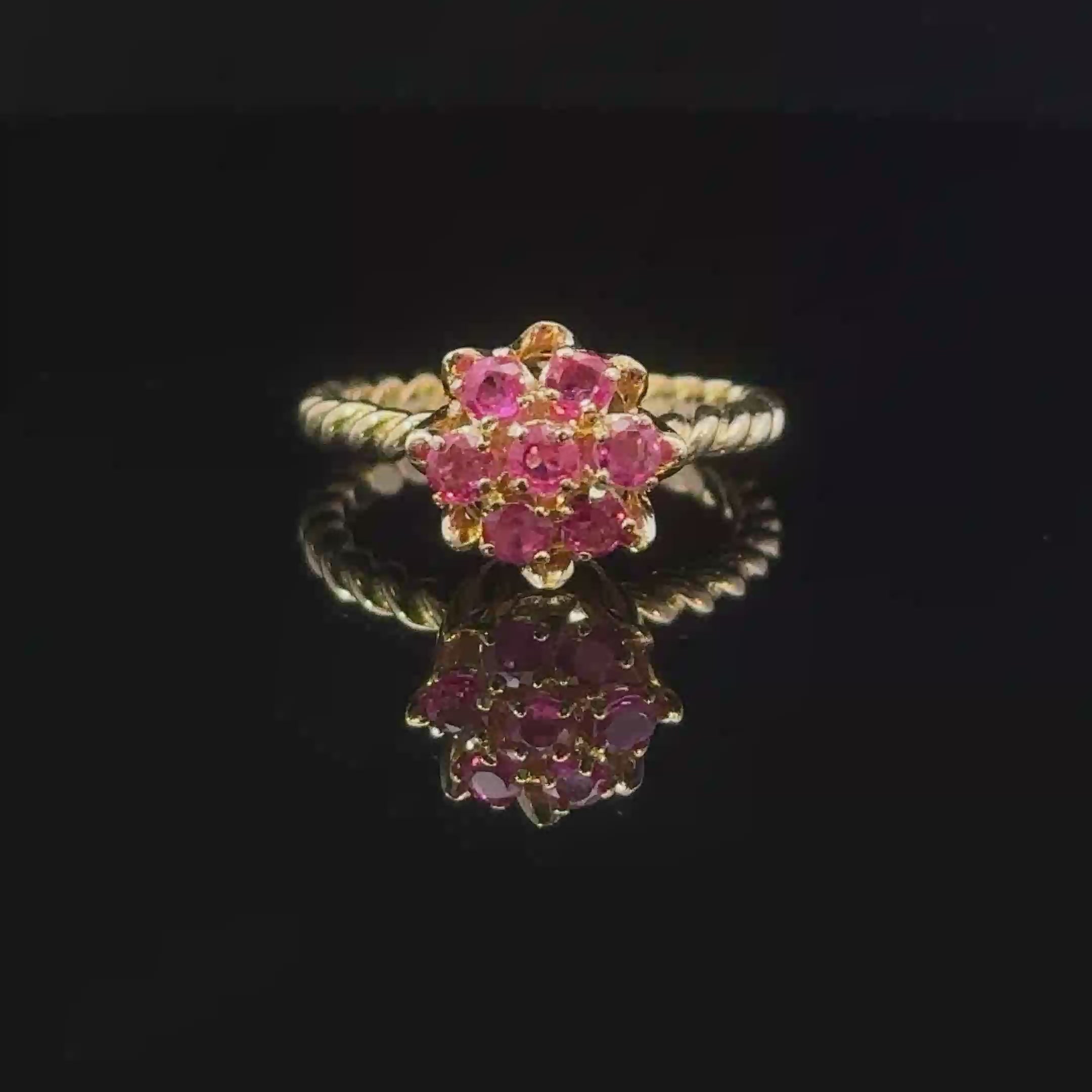 The Anne Ring embodies elegance with a touch of unique charm, featuring a vibrant ruby at its center. This captivating gemstone glows with deep red hues, offering a brilliant focal point that immediately catches the eye. The 14K yellow gold setting adds a warm, radiant frame to the ruby, highlighting its rich color. The twist band design adds a distinctive and graceful touch, making this ring stand out.