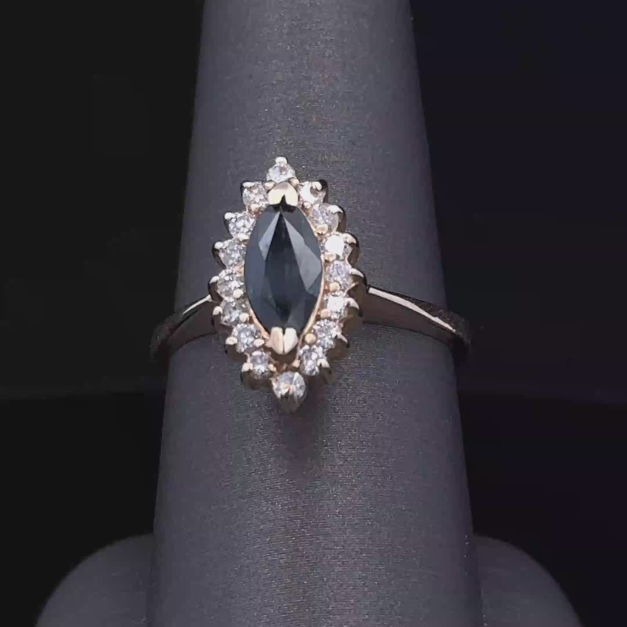 Aspen 14K Yellow Gold Fashion Ring with Marquise Sapphire & Diamonds