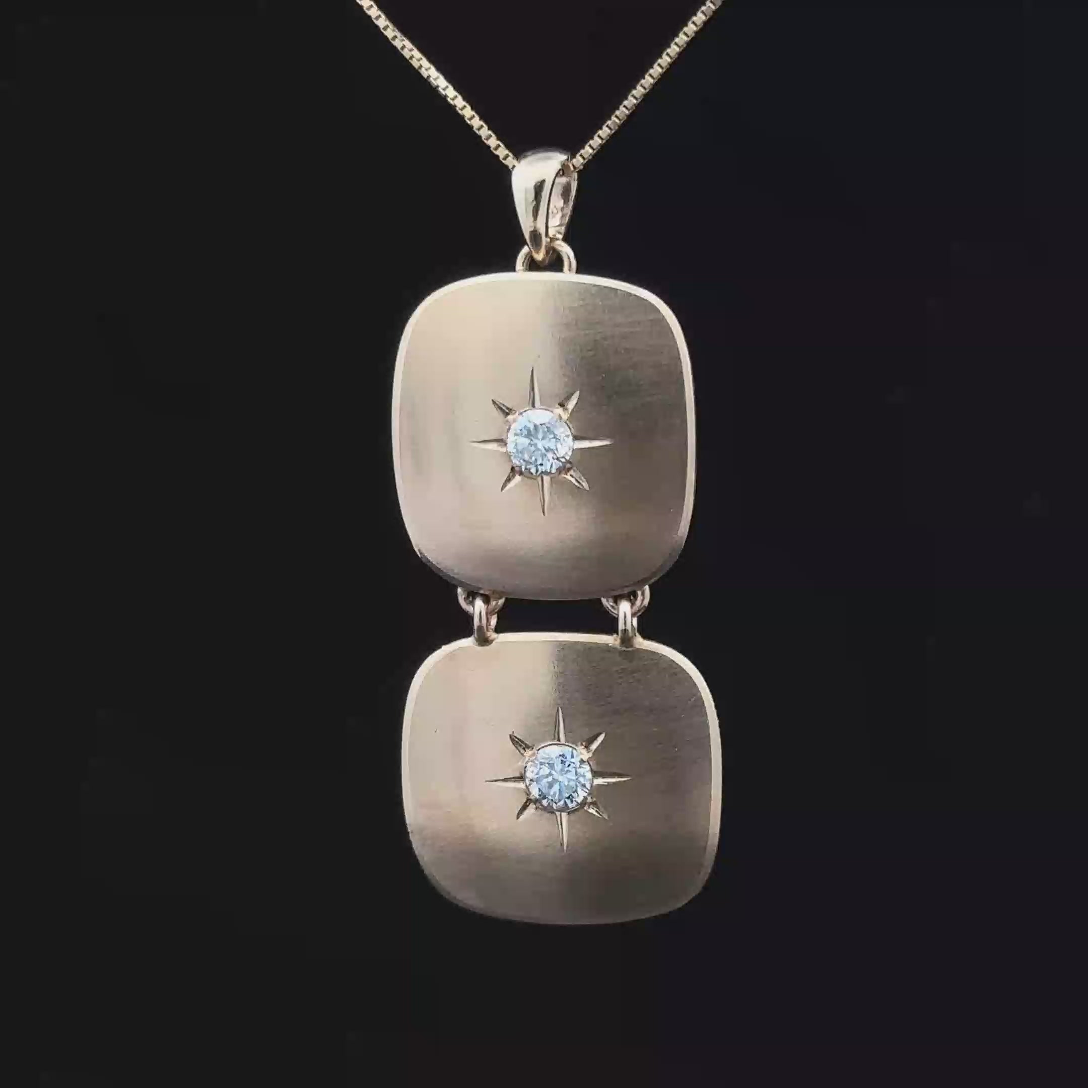 This elegant 18-inch yellow 14K gold necklace, named Crystal, features a stunning free-form pendant with a unique double-link design, accented by two sparkling diamonds. The polished finish and solid bail add a sophisticated touch, while the delicate box chain ensures comfortable wear. This necklace is a timeless accessory for any occasion.