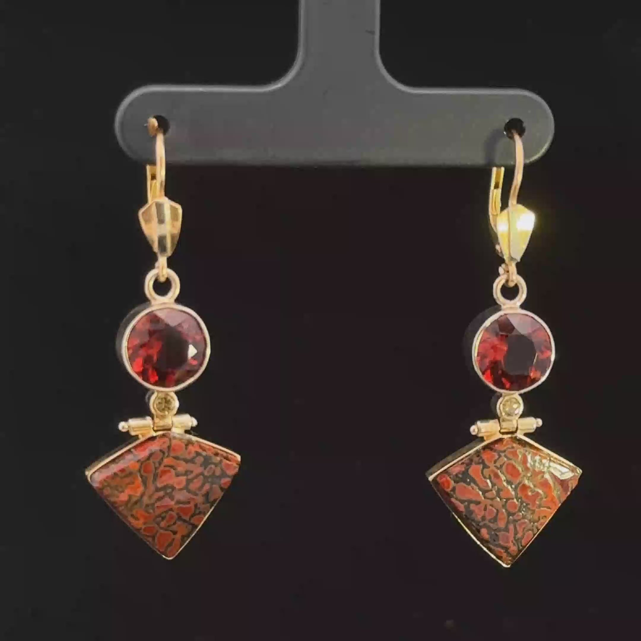Channel your inner fantasy hero with the unique Dara Earrings. Crafted in 14k yellow gold, these drop earrings feature a rich garnet at their center, framed by dazzling cognac diamond accents. The design is completed with an intriguing petrified dino bone drop, adding a prehistoric touch to these statement pieces. If you're a fan of medieval or fantasy-inspired style, these one-of-a-kind earrings will transport you straight to the world of your favorite epic tales. Make your mark with the Dara Earrings, designed by Kathryn Pearce.