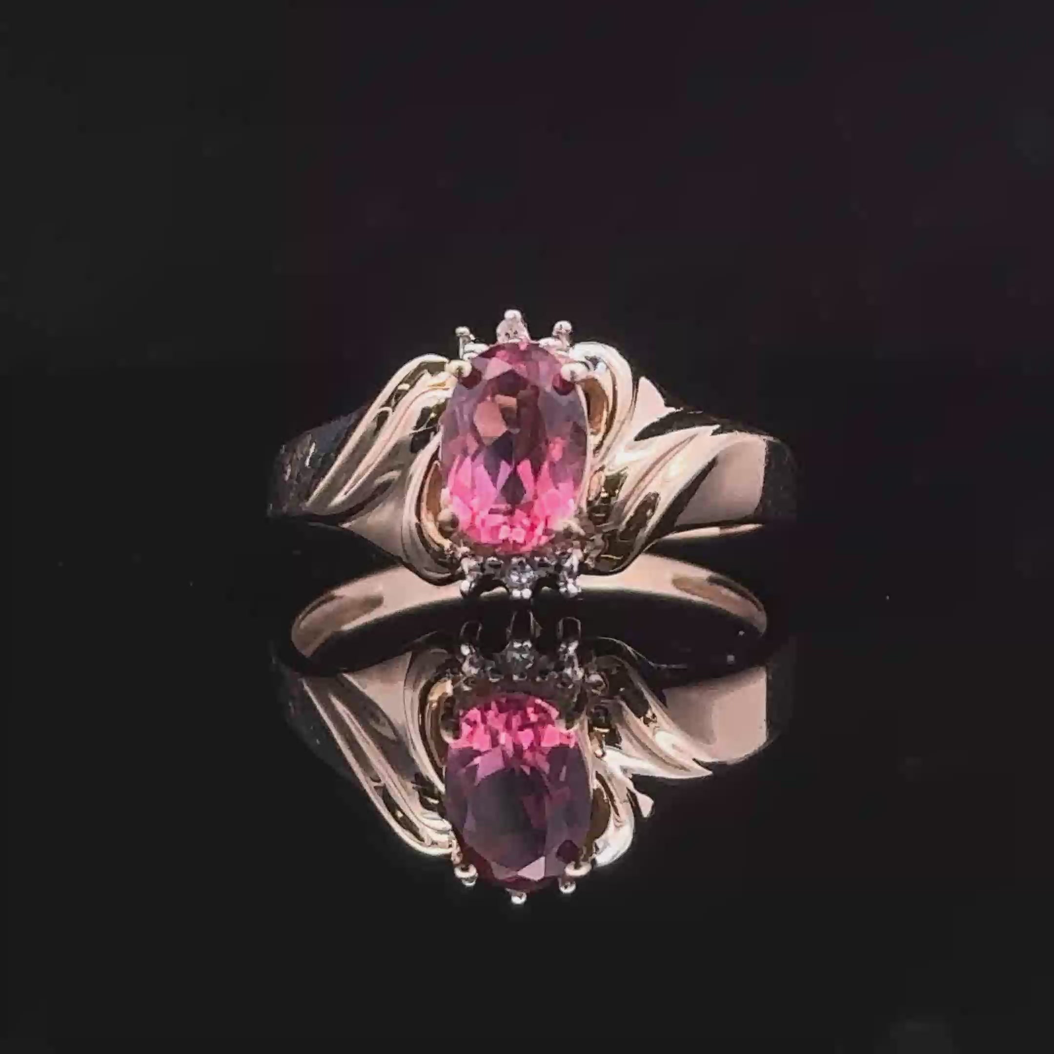 Elodie Yellow 10K Antique Ring with Pink Tourmaline and Diamonds