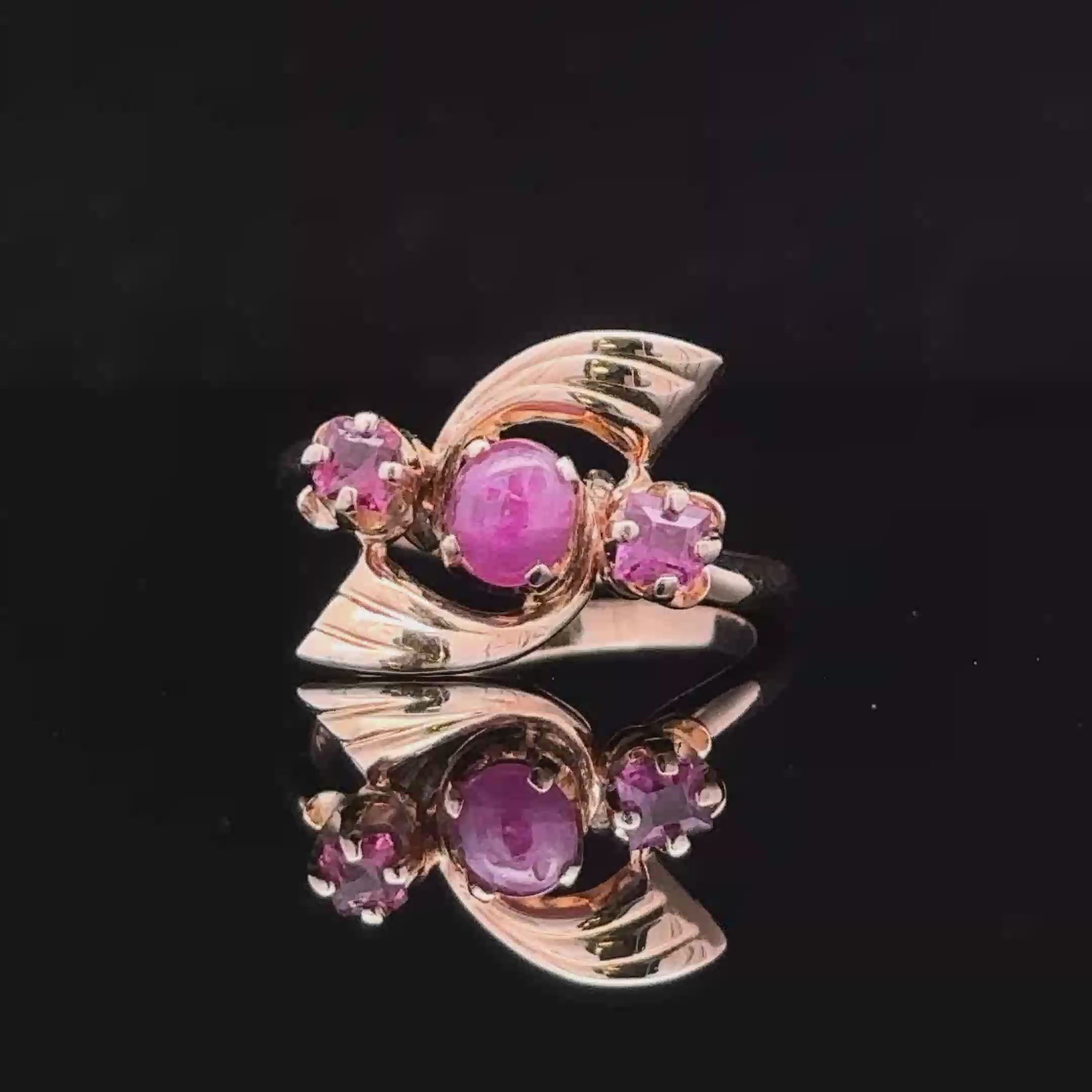 The Evangeline ring in 14K yellow gold features three vibrant rubies, symbolizing the past, present, and future. A timeless design that radiates elegance and meaning.