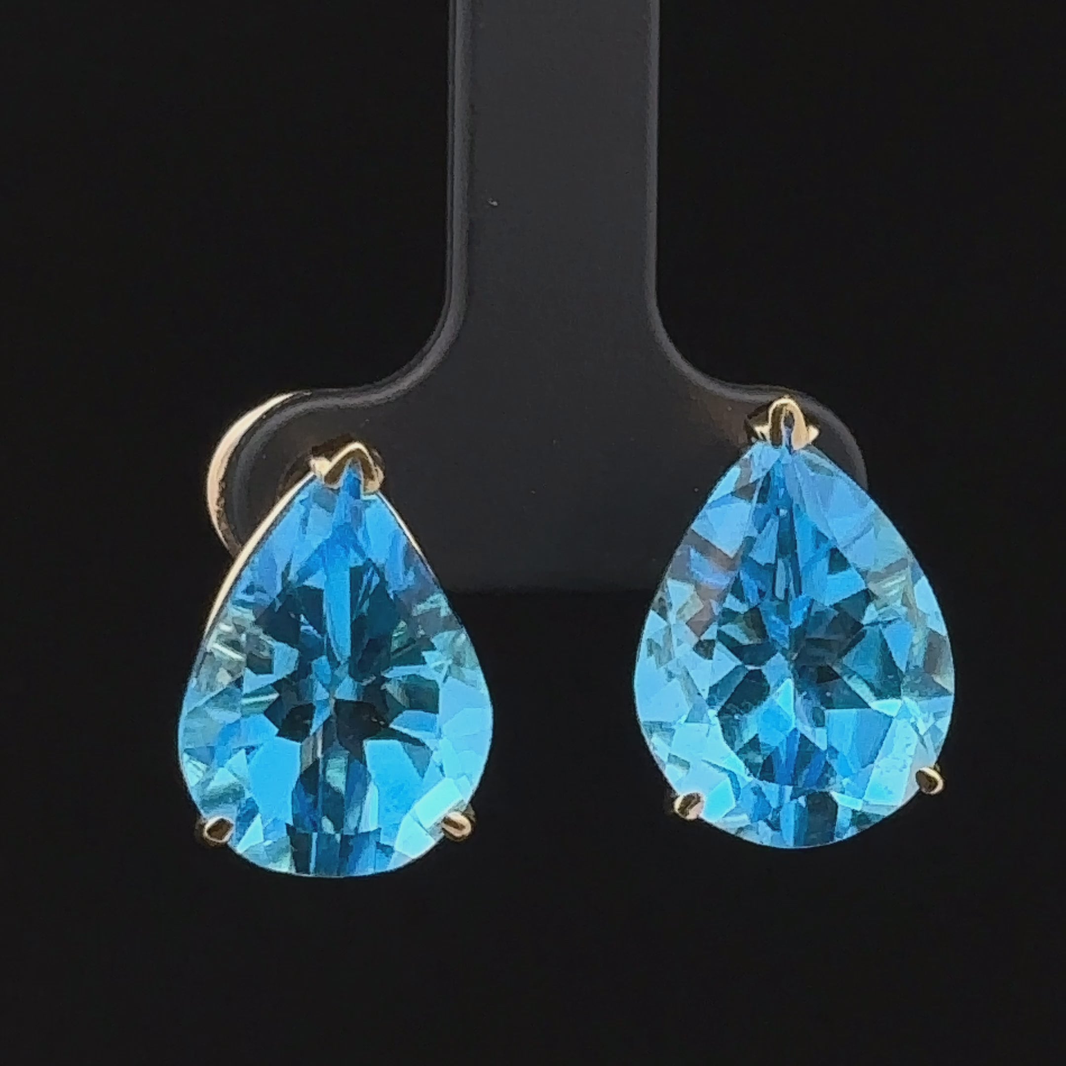 The Jane Earrings are a perfect blend of contemporary elegance and timeless beauty. Crafted from 14K yellow gold, these drop earrings showcase two stunning oval blue topaz stones, each weighing an impressive 18.00 carats. The vibrant blue hue of the topaz stones contrasts beautifully with the warm glow of the yellow gold, creating an eye-catching effect that enhances any outfit.