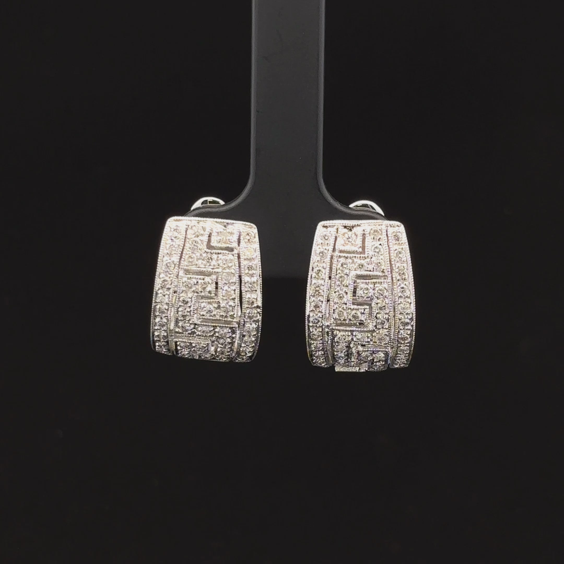 The Julianna Earrings are a perfect blend of sophistication and modern design. Crafted from luxurious 18K white gold, these medium hoop earrings are adorned with 88 sparkling round diamonds, totaling 1.00 carats. The diamonds, with their G/H color and SI1 clarity, add an exquisite sparkle to the hoops, making them a standout accessory for any outfit.