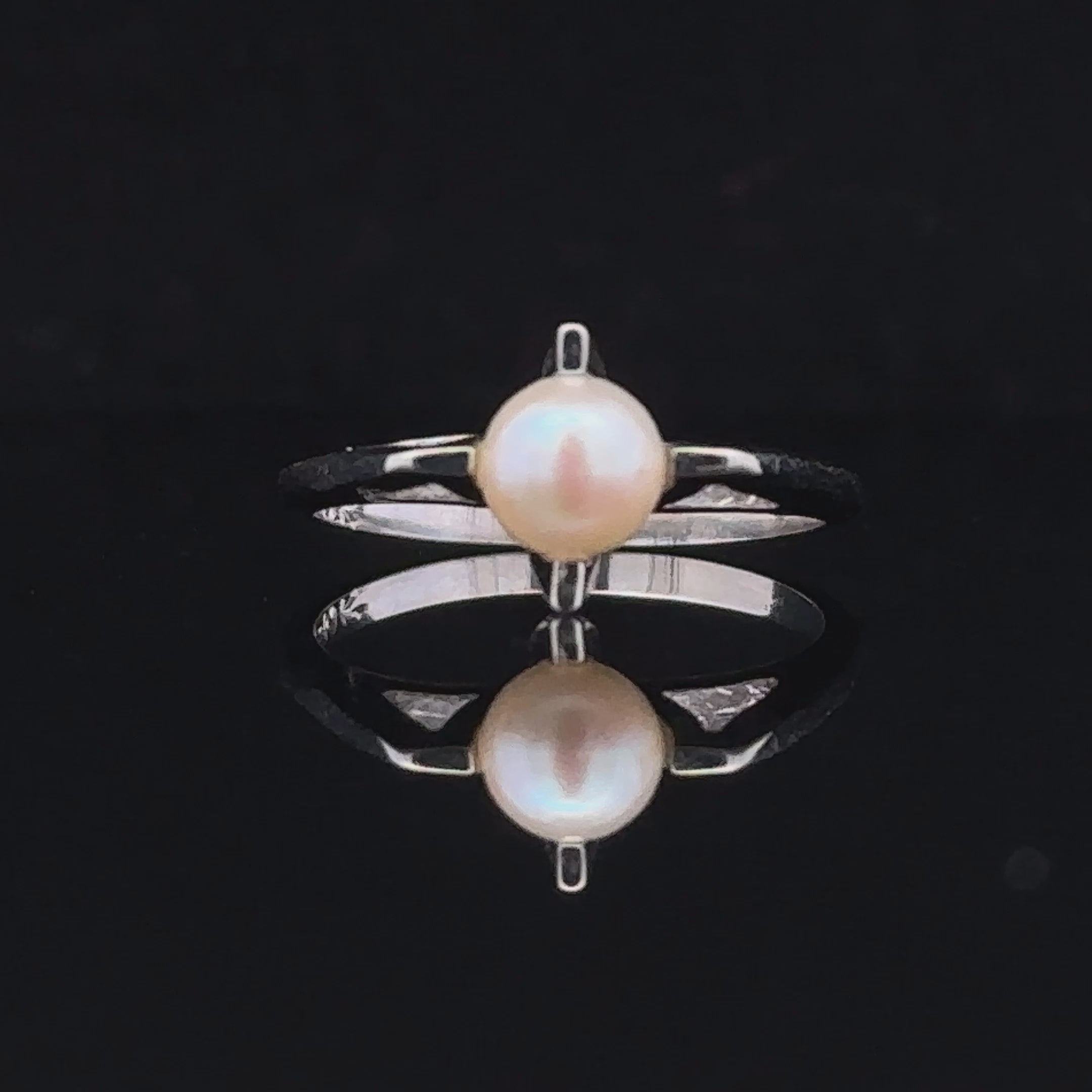 The Kamiyah ring in 10K white gold features a classic single pearl set in a contemporary design. This elegant piece offers a timeless yet modern look.