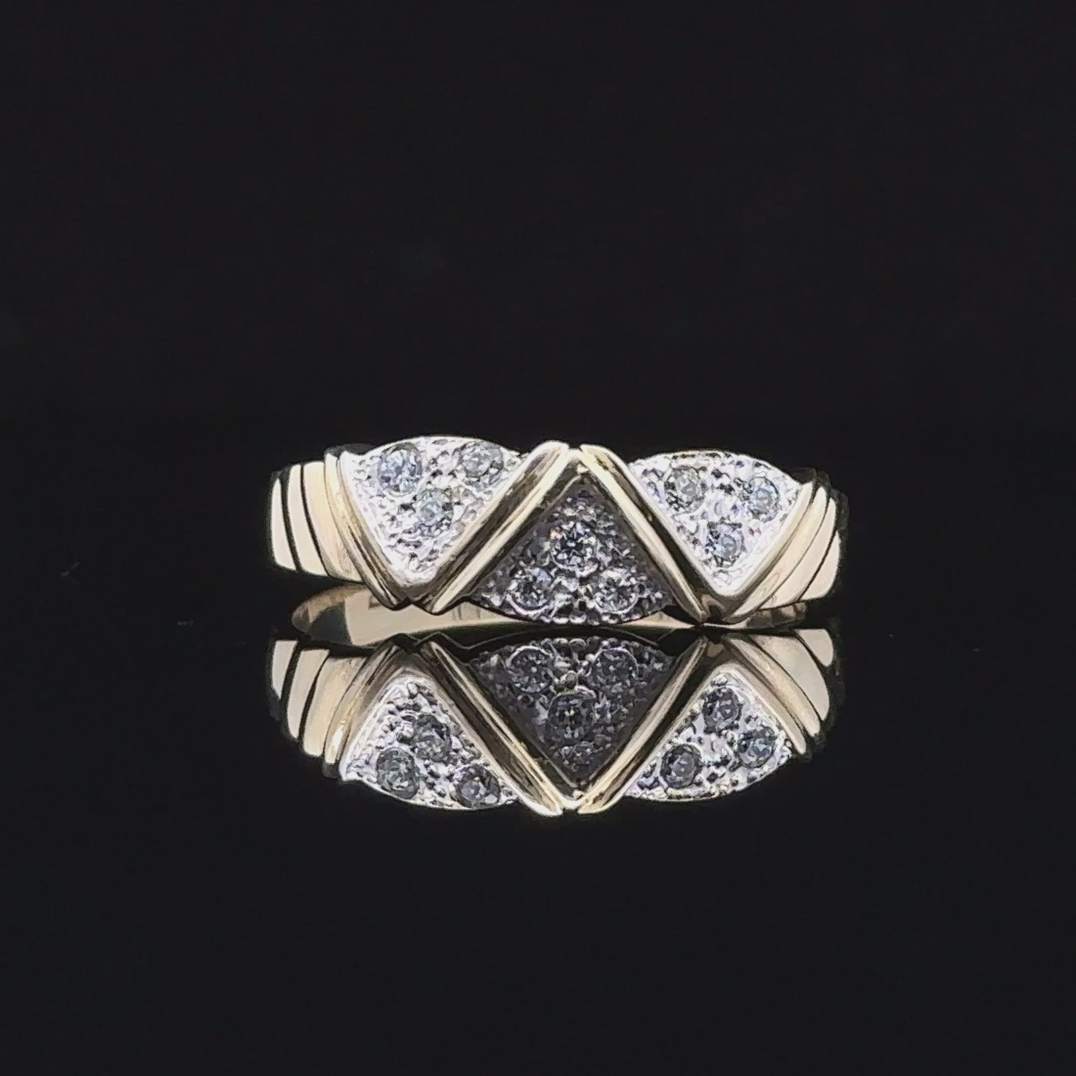 Introducing the Morgan 14K Yellow Gold Contemporary Ring, a chic and stylish piece designed for the modern jewelry lover. Crafted in 14K yellow gold, this ring features a sleek, contemporary design that is both minimalist and sophisticated. The band is adorned with 9 sparkling round diamonds, totaling 0.13 carats, with an H/I color grade and SI1 clarity, offering a subtle yet stunning brilliance. The Morgan ring is a perfect blend of modern design and timeless elegance, making it an ideal choice for everyday wear or special occasions.