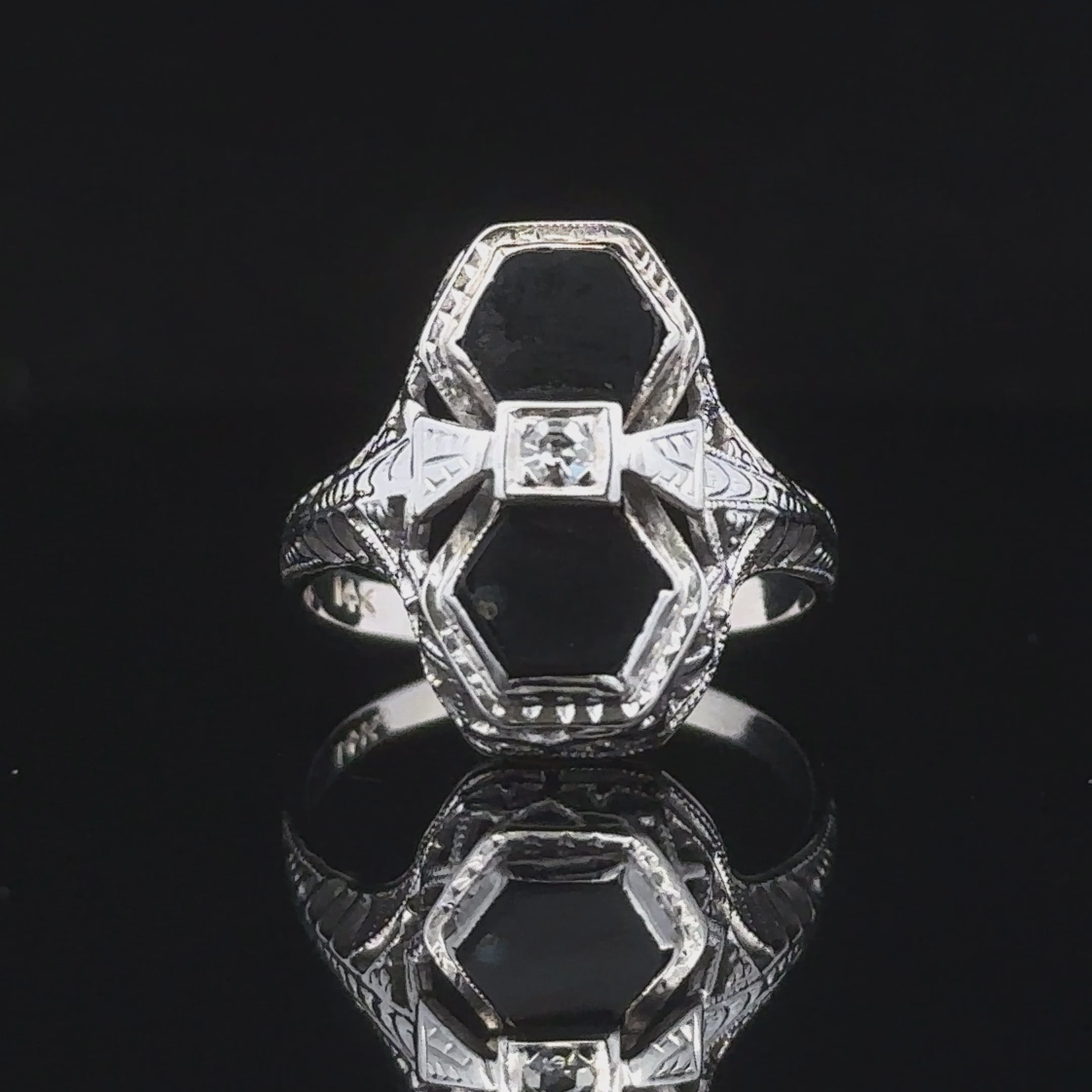 Scarlet White 14K Filigree Black Onyx & Diamond Ring